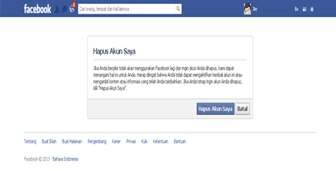 Cara menghapus Facebook ini adalah untuk sementara waktu saja. Kalau Anda rindu ingin menggunakan Facebook lagi maka langsung login saja ke akun Anda maka akun akan aktif kembali. Dengan cara ini, jangan kuatir pihak Facebook akan menghapus akun Anda secara permanen karena tidak melakukan login dalam waktu yang lama.